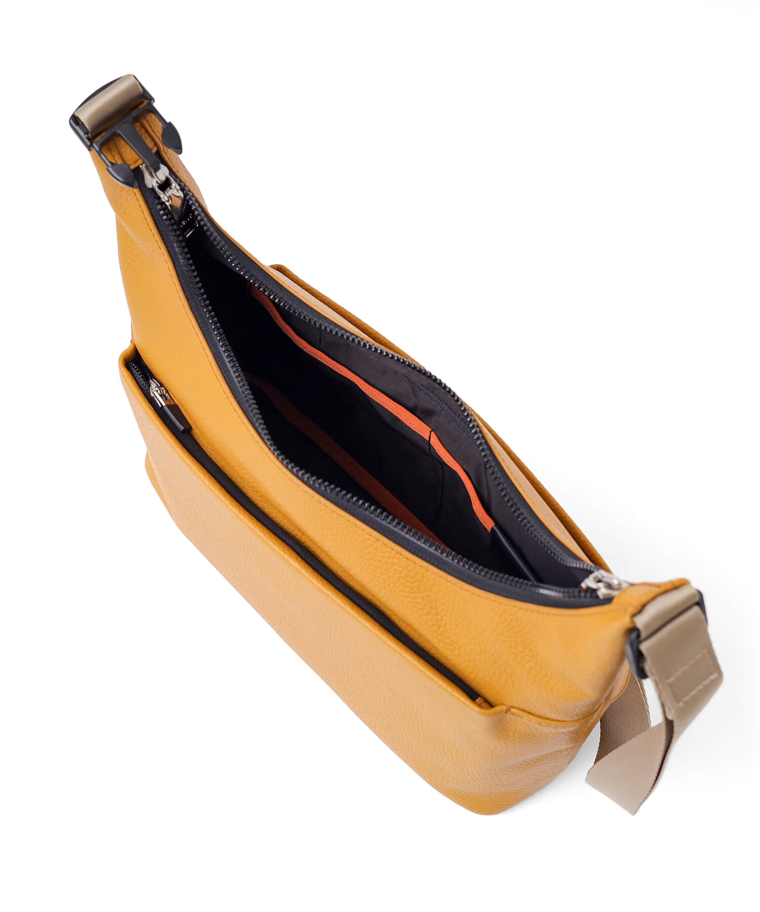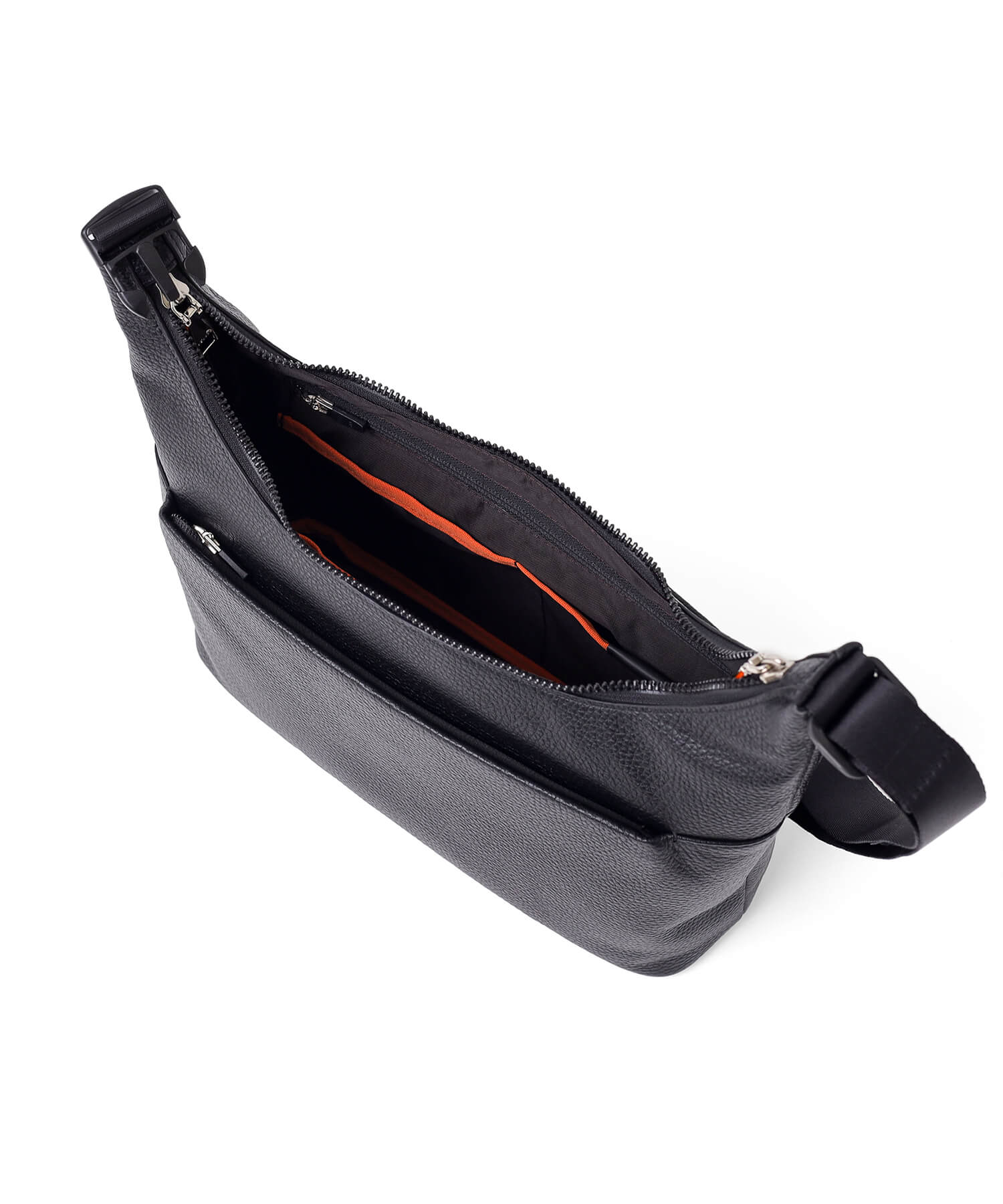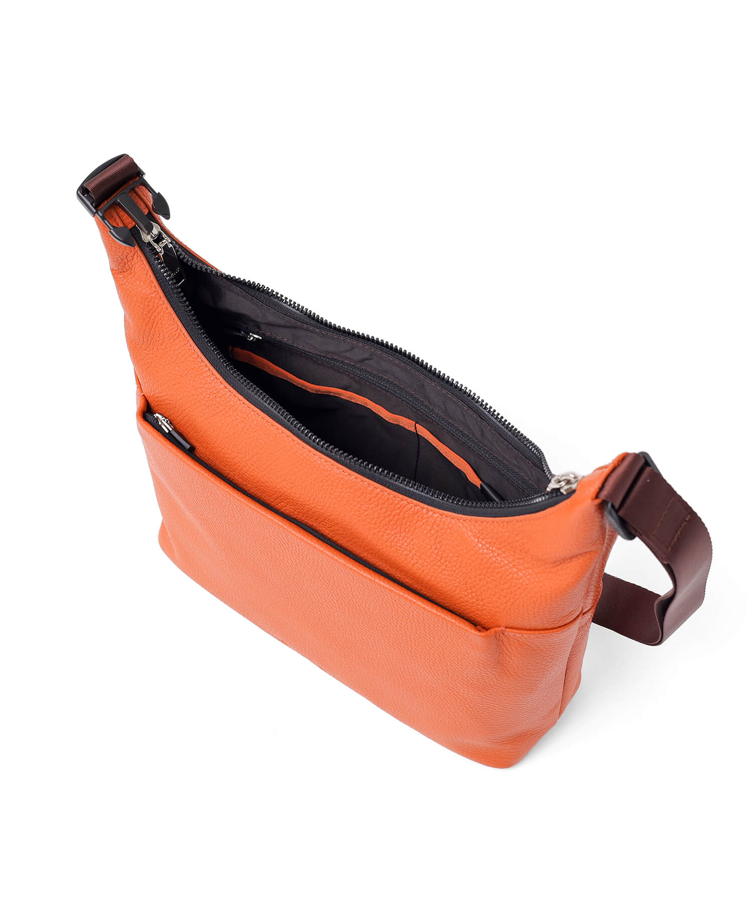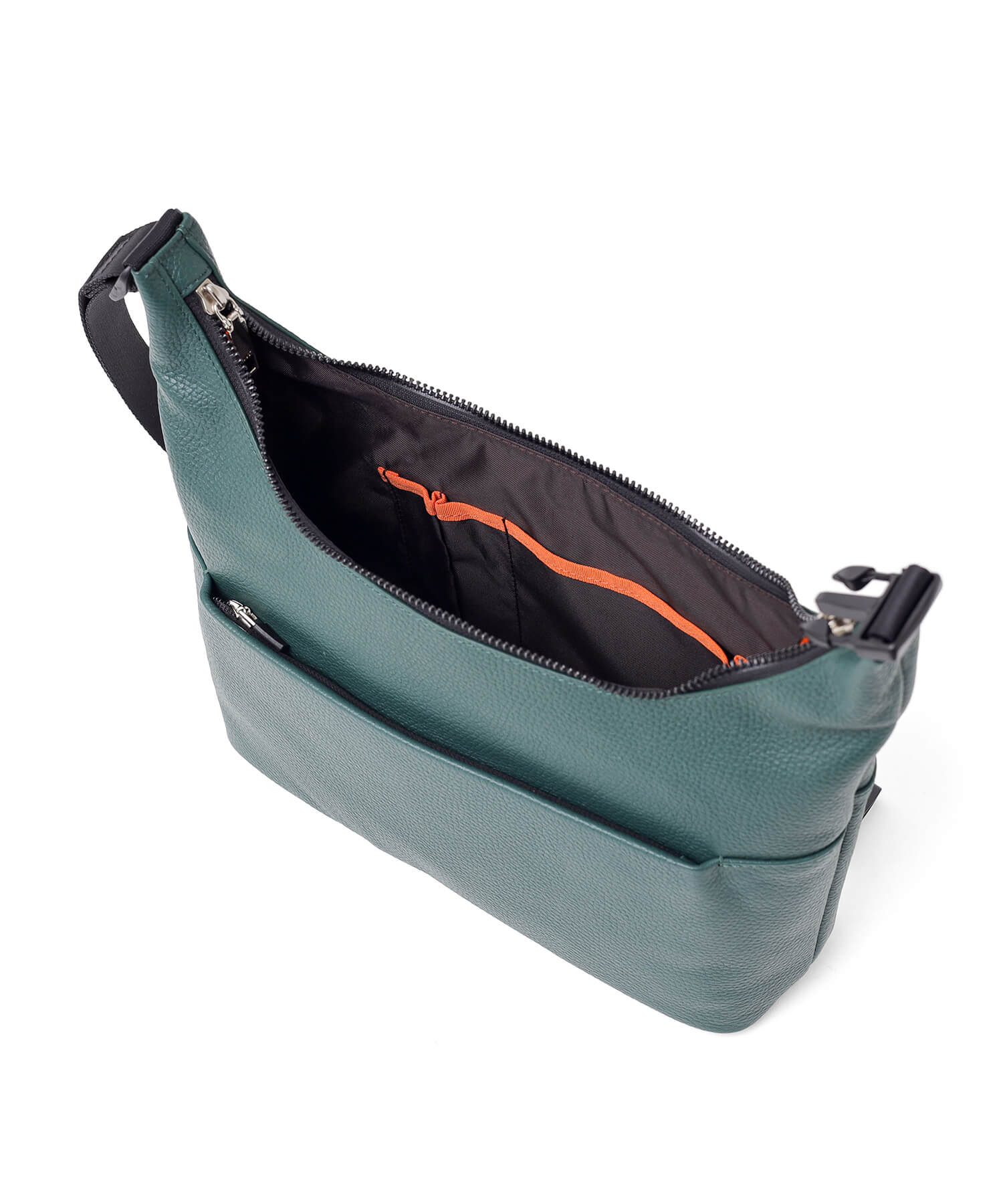 内装には、ガジェット類や小物の収納に適した豊富なポケットが配置されており、整理整頓がしやすい設計です。容量の大きいメインルームに小物をそのまま入れると、鞄の中で散らばりやすく、必要な時にすぐに見つけにくくなることがあります。しかし、このショルダーバッグはポケットを活用することで、物が迷子になることなく、効率よく整理して収納できるため、使い勝手が格段に向上します。