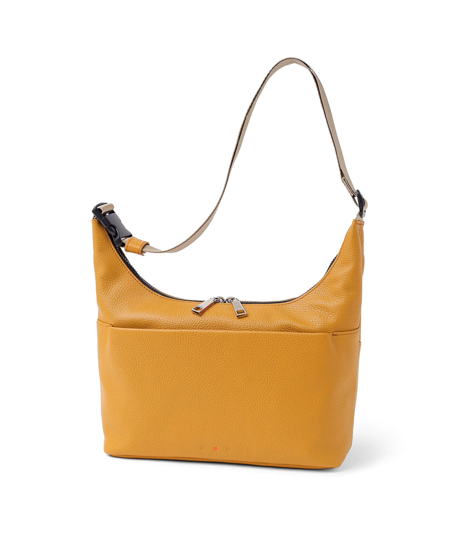 ショルダーベルトの片側にはバックル仕様が施されており、荷物が重く感じる際にも腕を通さずに簡単にベルトを下ろすことができます。また、着脱がスムーズに行えるワンタッチタイプのバックルを採用しており、快適にご使用いただけます。このデザインにより、荷物の出し入れが楽にでき、忙しい日常でもストレスなくお使いいただけます。