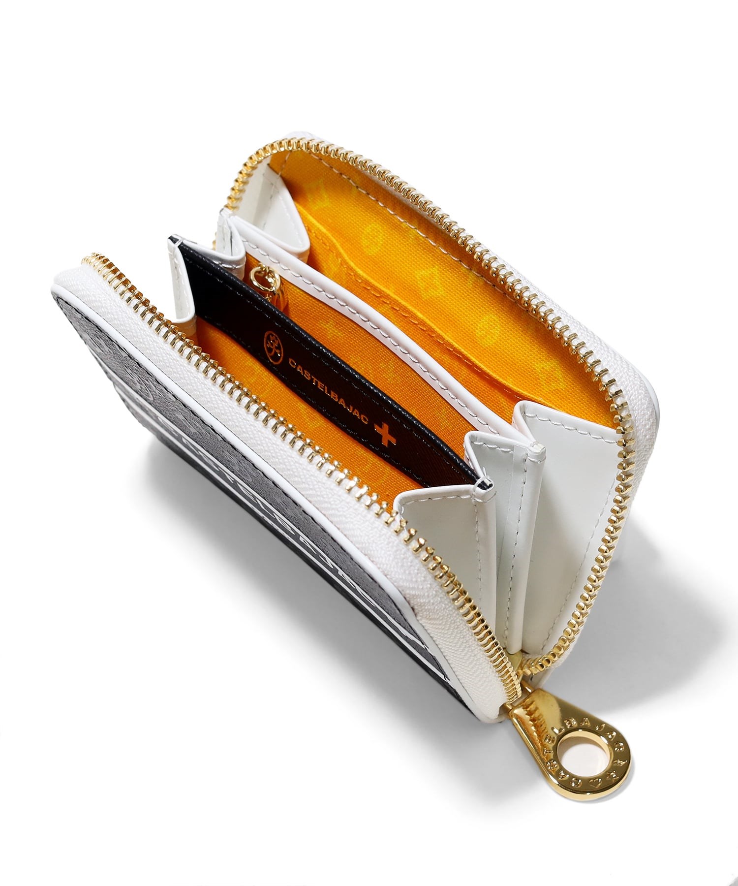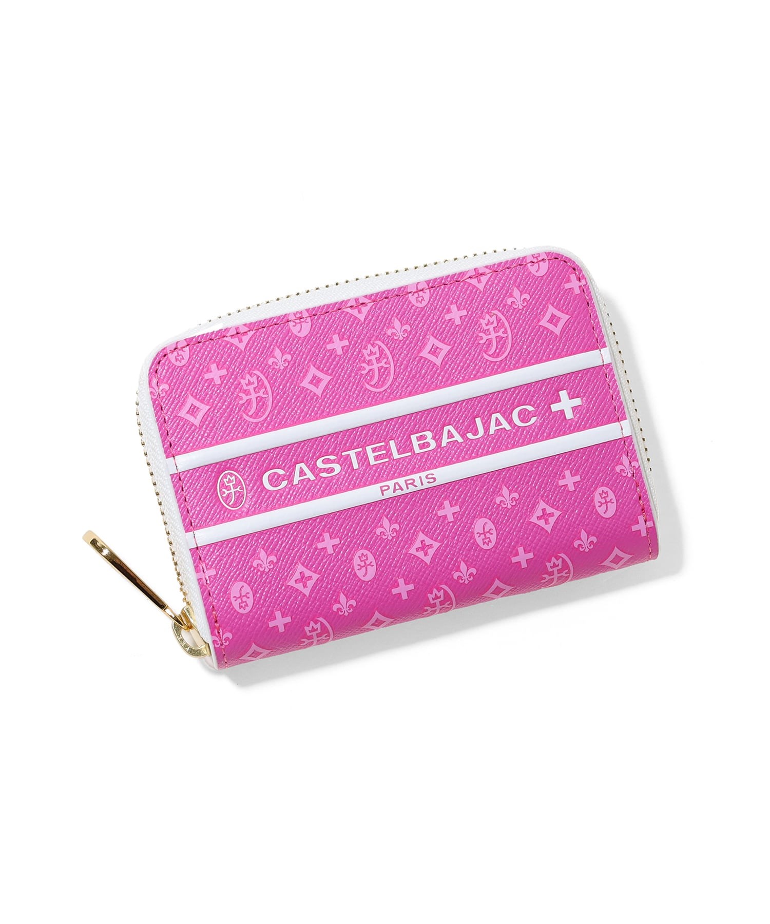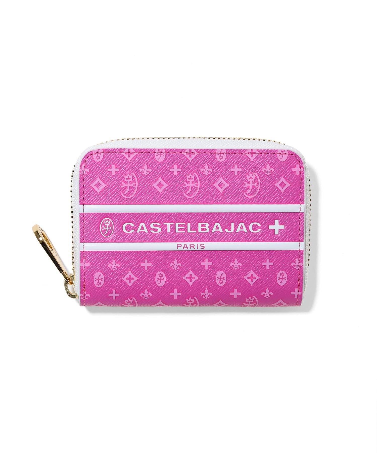 モノグラム柄が目を惹くポップなデザインに仕上げたCASTELBAJACの小銭入れ。メインルームは3室に分かれているため、小銭を分けて収納ができます。また、ポケット類も3つありますのでカードの収納ができます。
