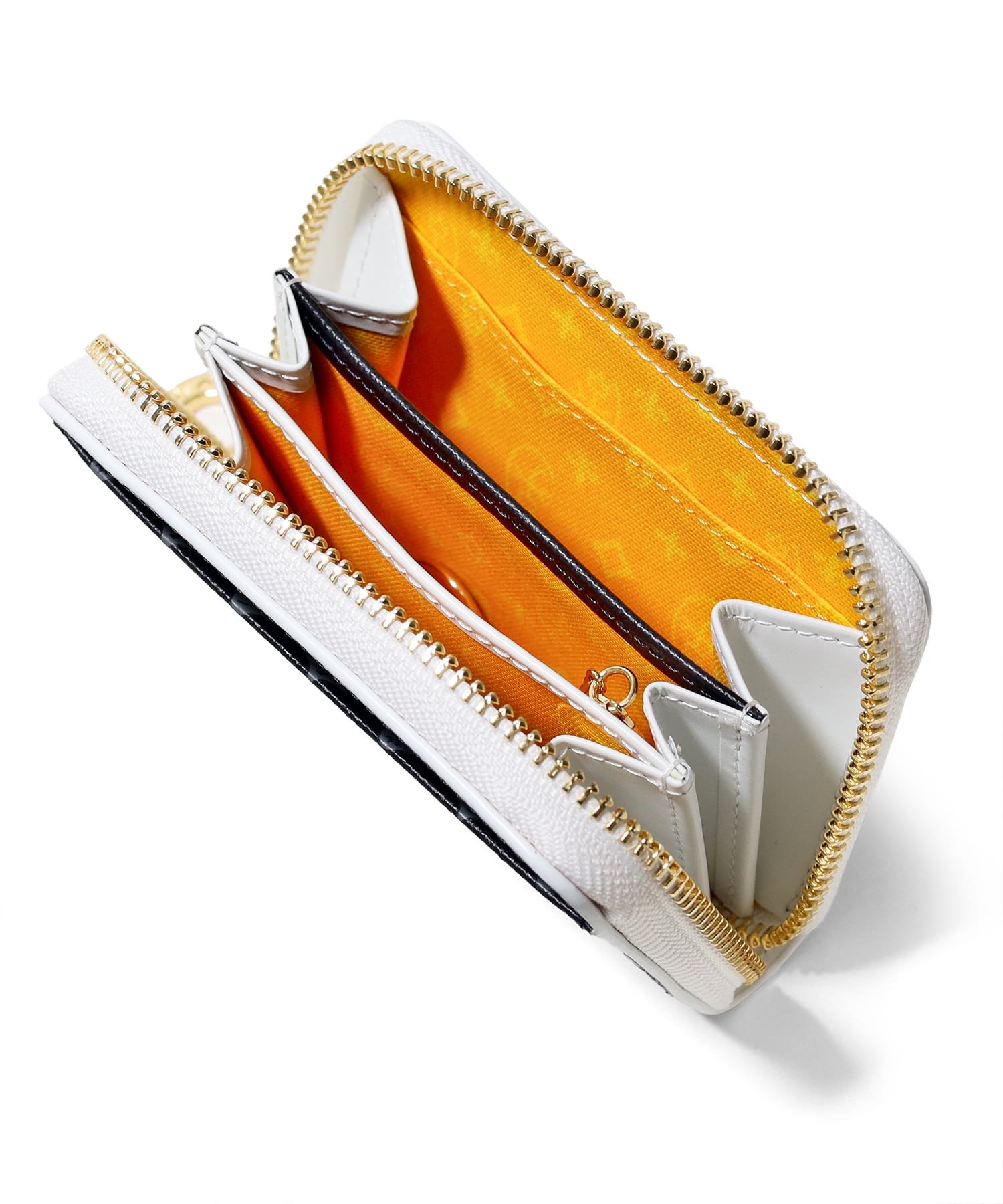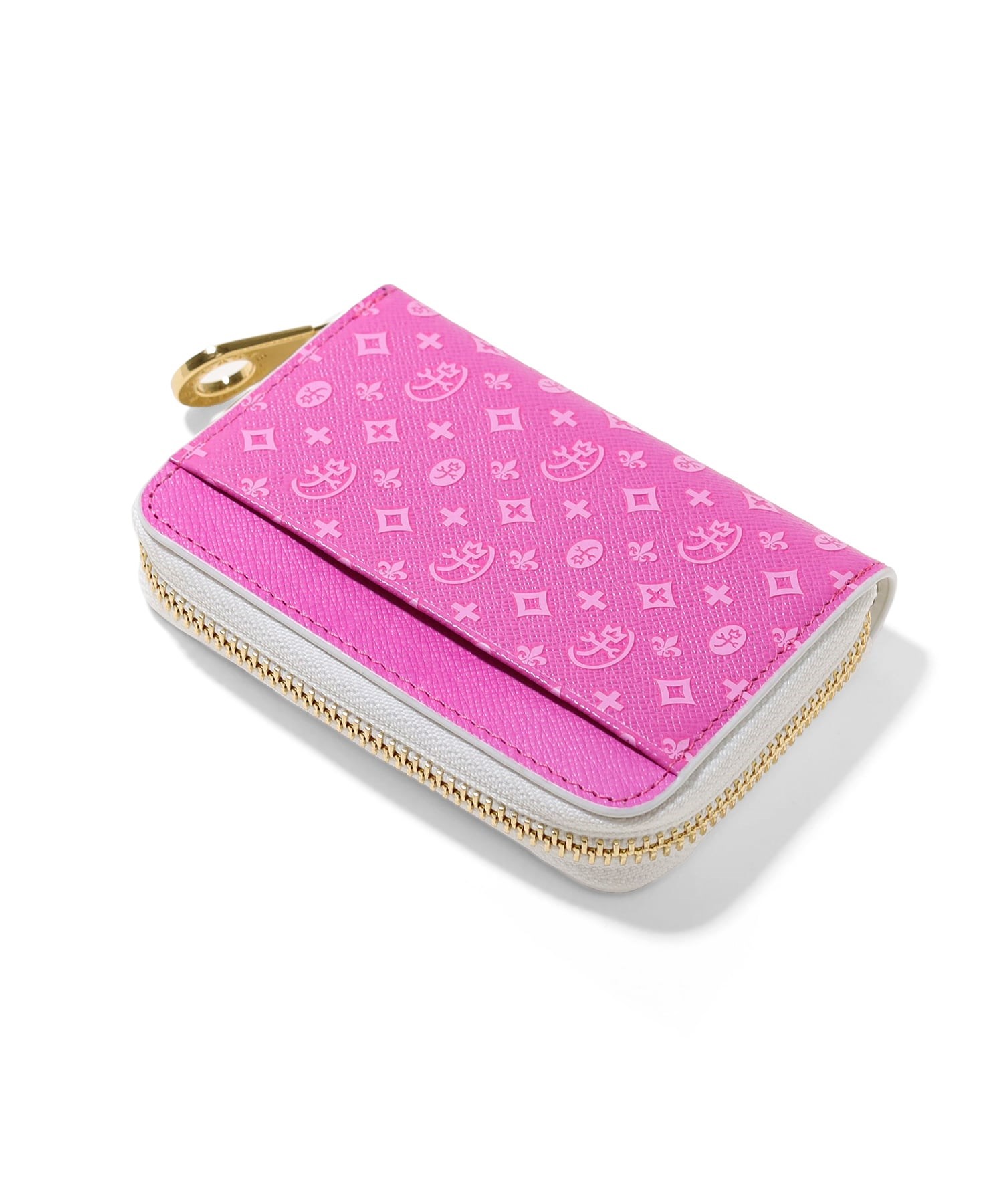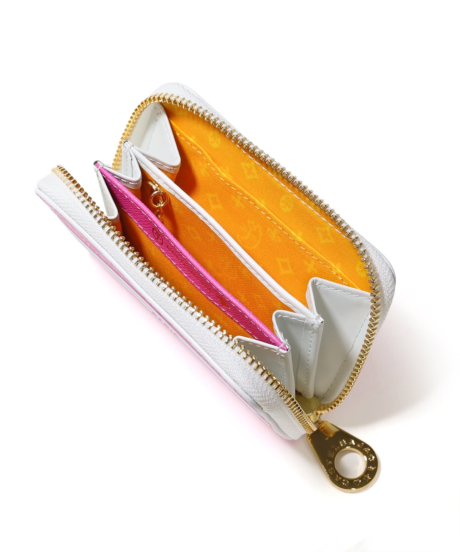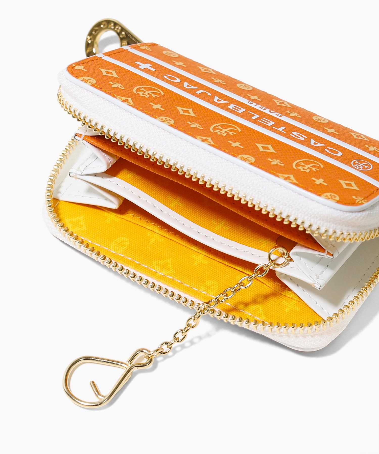 モノグラム柄が目を惹くポップなデザインに仕上げたCASTELBAJACの小銭入れ。メインルームは3室に分かれているため、小銭を分けて収納ができます。また、ポケット類も3つありますのでカードの収納ができます。