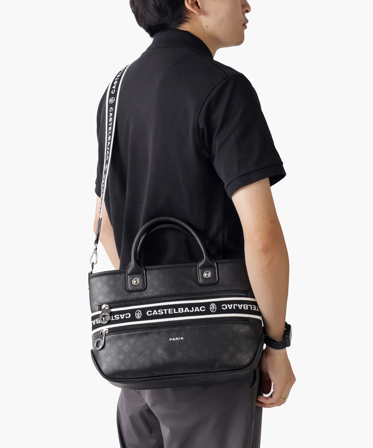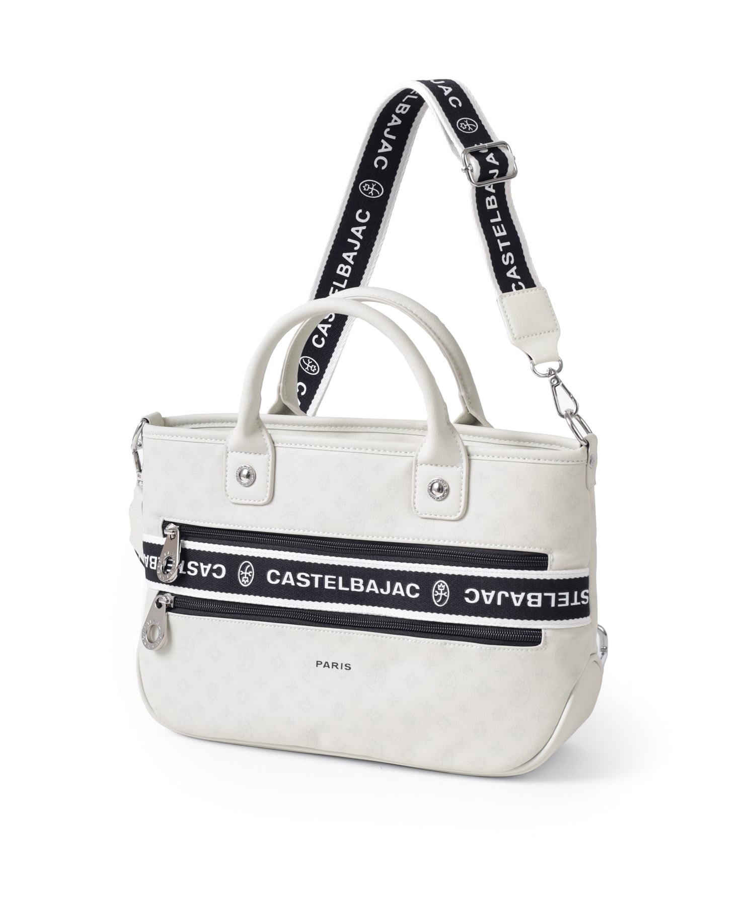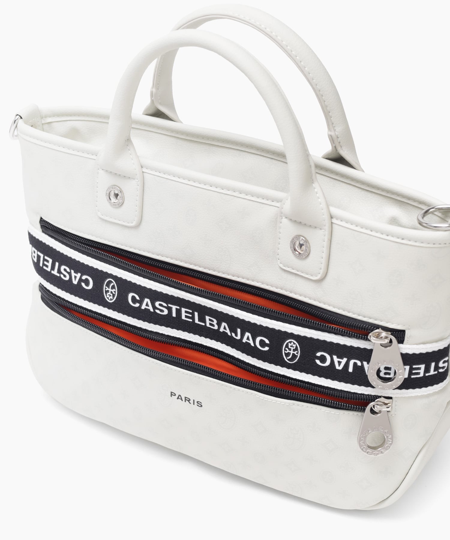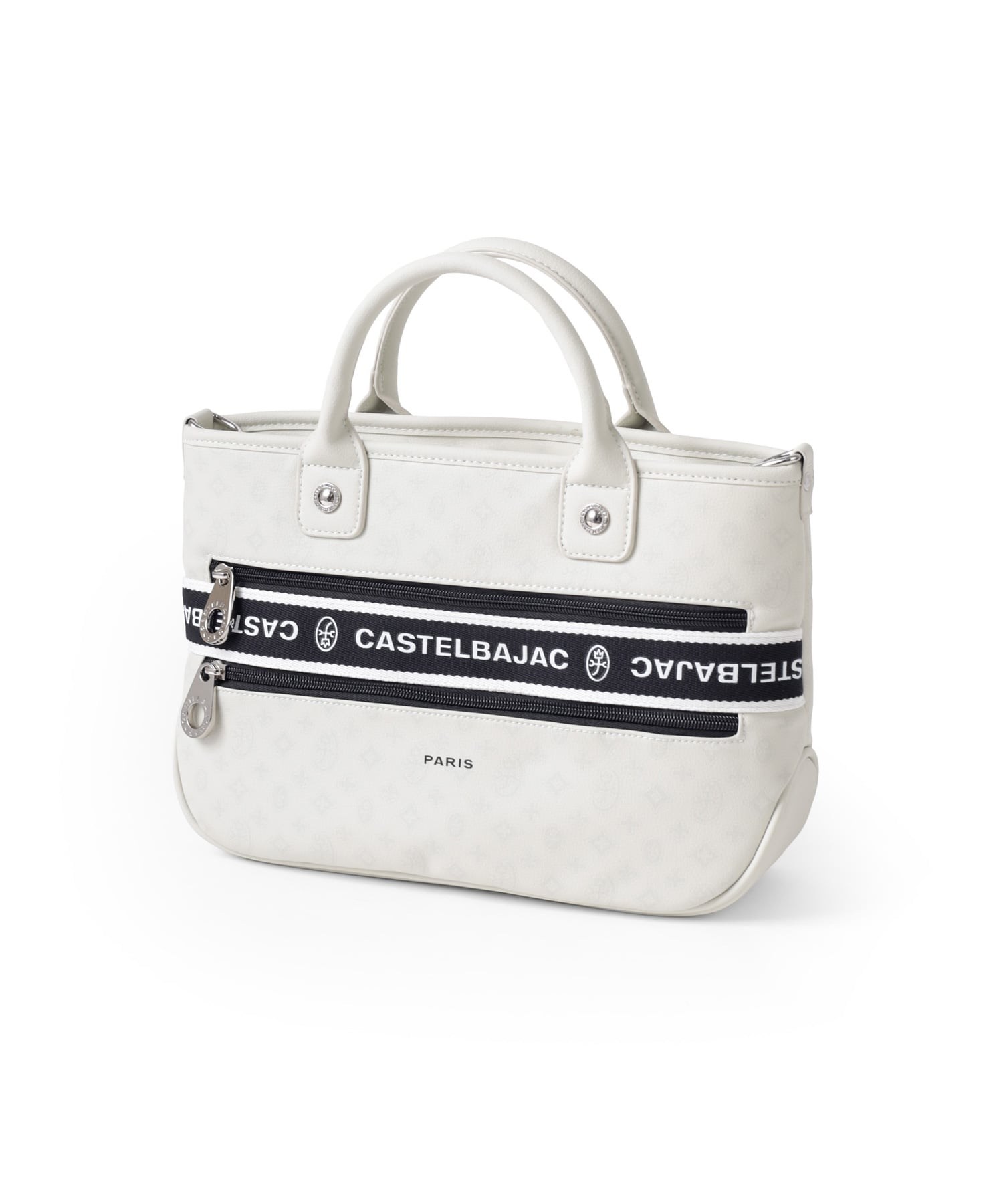 タウンからトラベルまで幅広く使える多機能なカステルバジャックのB5サイズのミニトートバッグ。取り外し可能なショルダーベルトが付属し、肩掛けスタイルでもお使いいただける2WAY仕様です。このバッグの素材には、プリントにWコーティングを施し、奥深く透明感のある生地に仕上げています。耐久性と美しさを兼ね備え、あらゆるシーンでスタイリッシュにお使いいただけます。