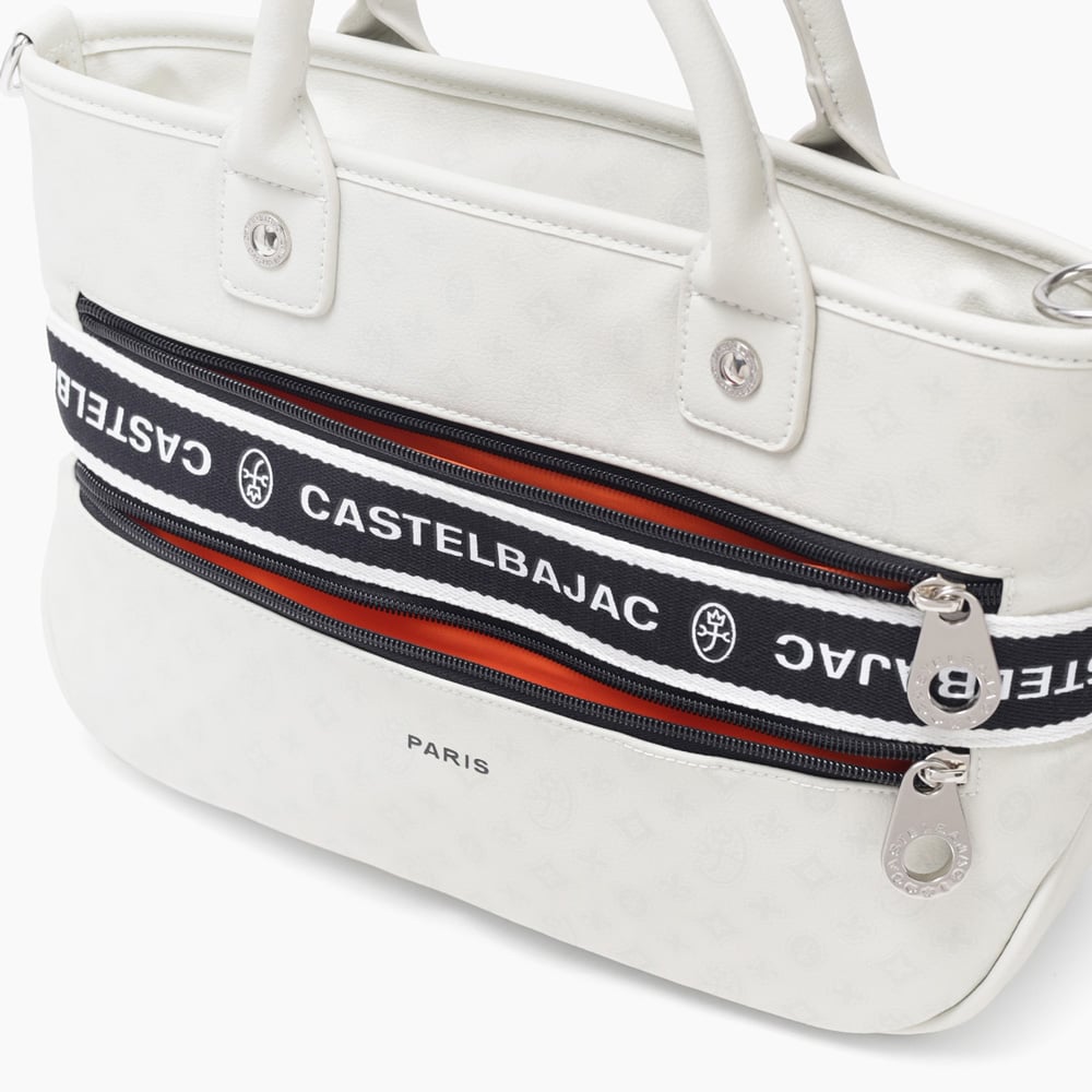 タウンからトラベルまで幅広く使える多機能なカステルバジャックのB5サイズのミニトートバッグ。このショルダーバッグの素材には、プリントにWコーティングを施し、奥深く透明感のある生地に仕上げています。耐久性と美しさを兼ね備えたこのバッグは、あらゆるシーンでスタイリッシュにお使いいただけます。