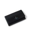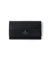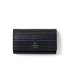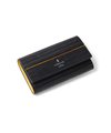 エンボス加工を施した牛革を使用しており、傷が付きにくい素材感となっています。メインカラーのクロにポイント使いしたラインカラーが手元を彩ってくれます。また、内装にはポイントカラーと同色に仕上げております。