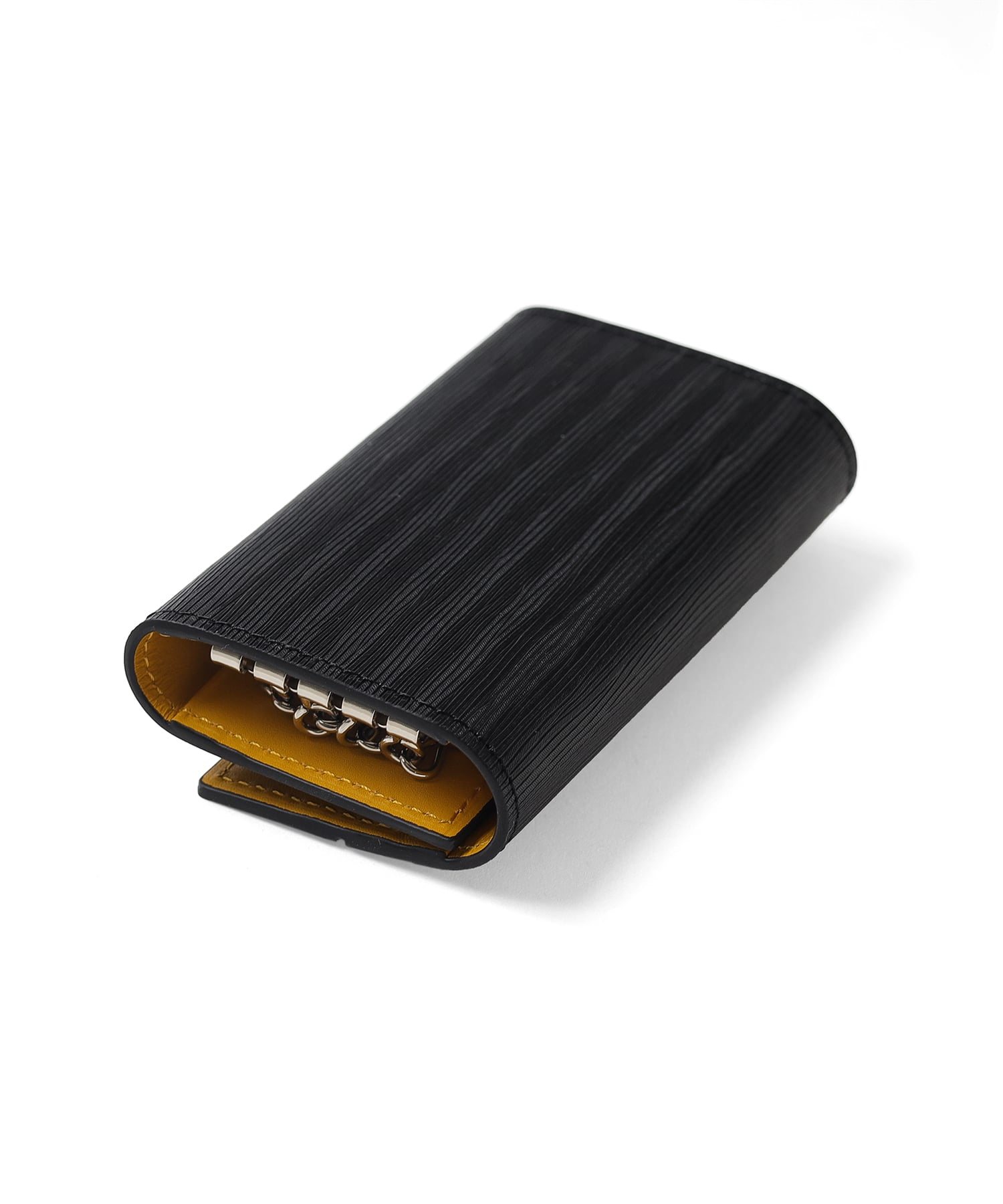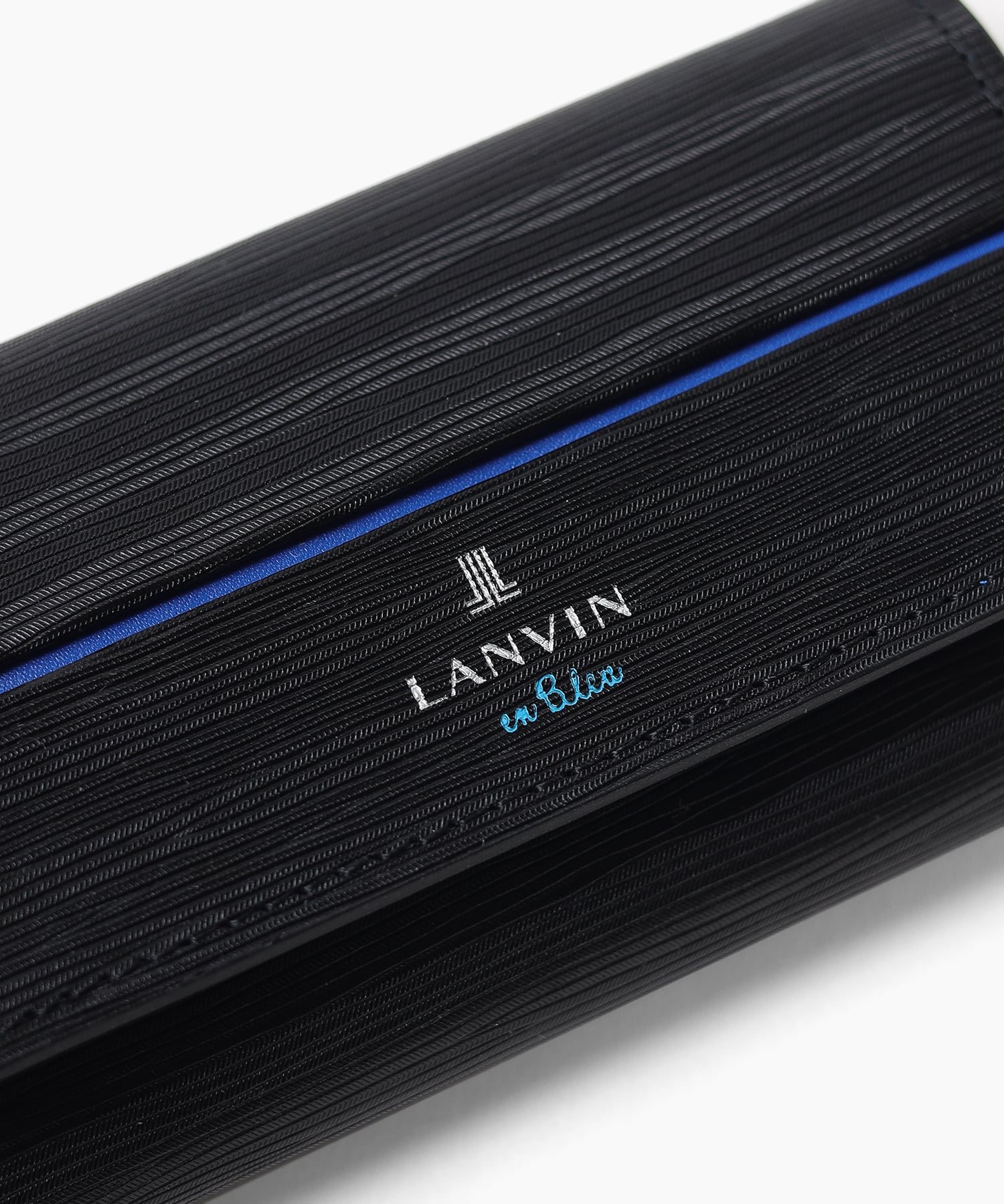 ポイントのラインカラーと見る角度によって模様が浮かび上がる、深みあるデザインに仕上げたランバンオンブルーのキーケースです。内装は、ラインカラーに合わせたバイカラー仕様になっております。