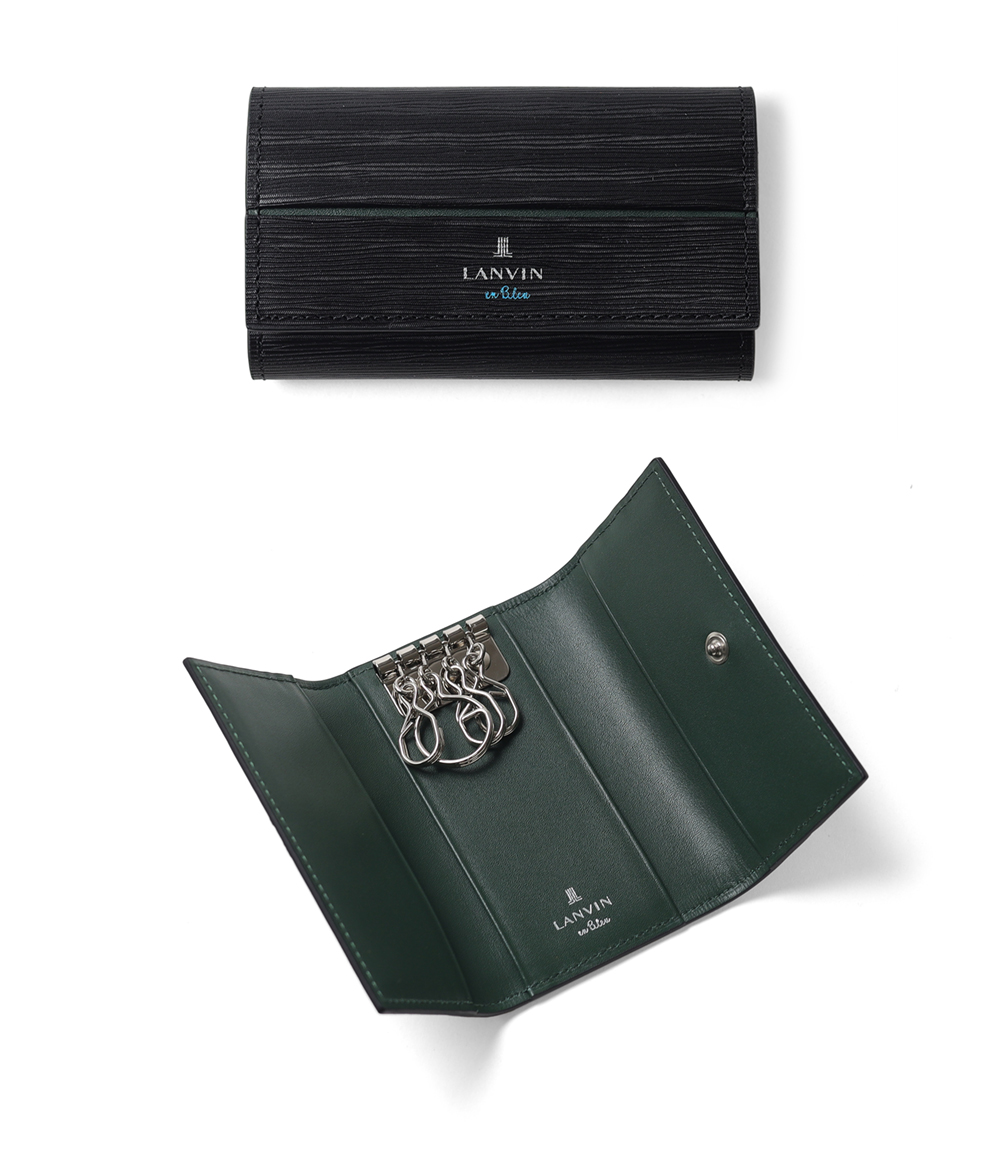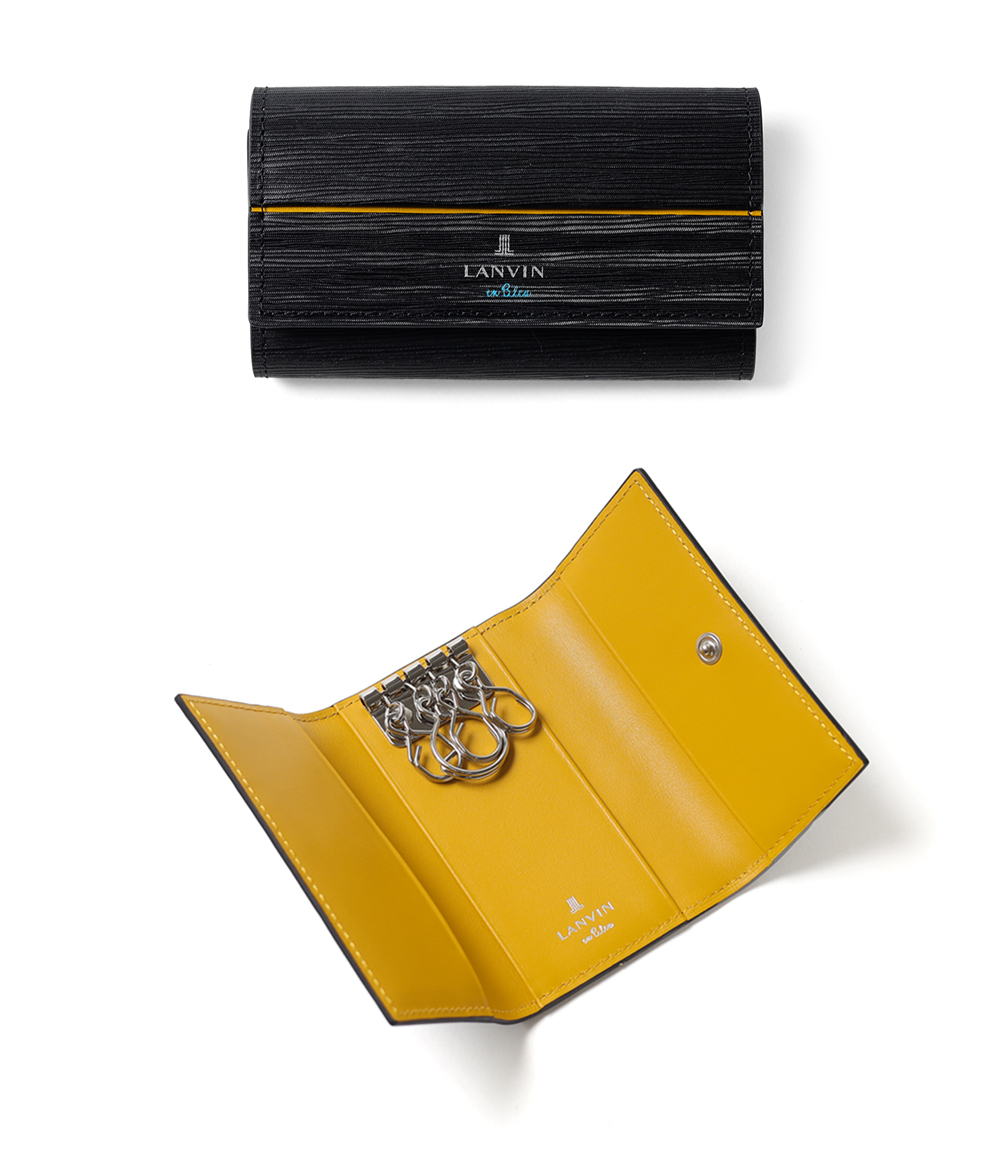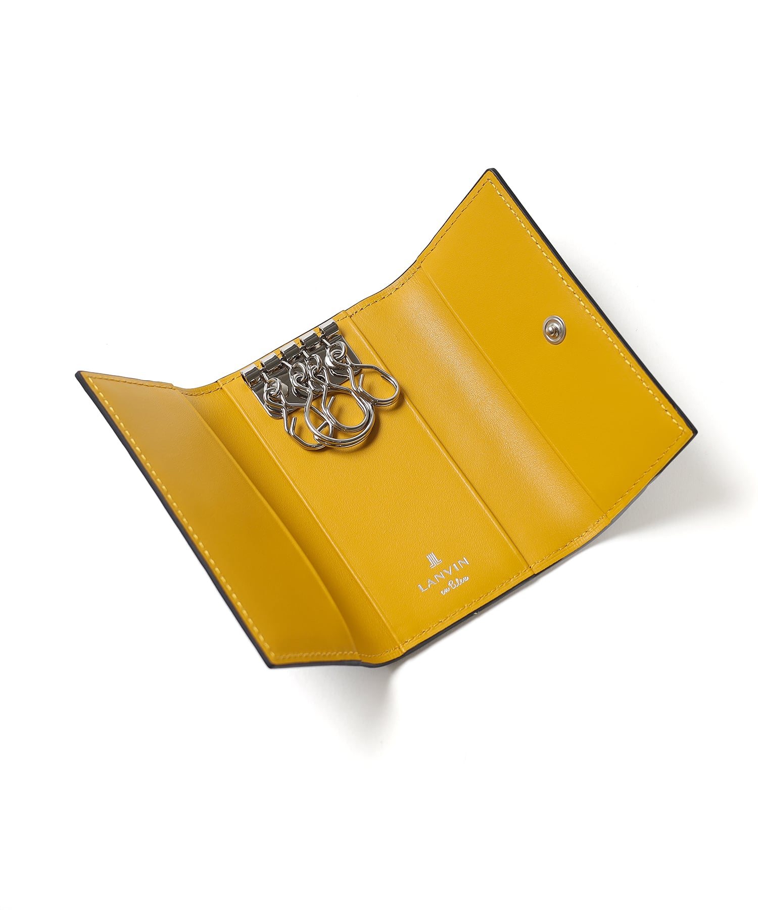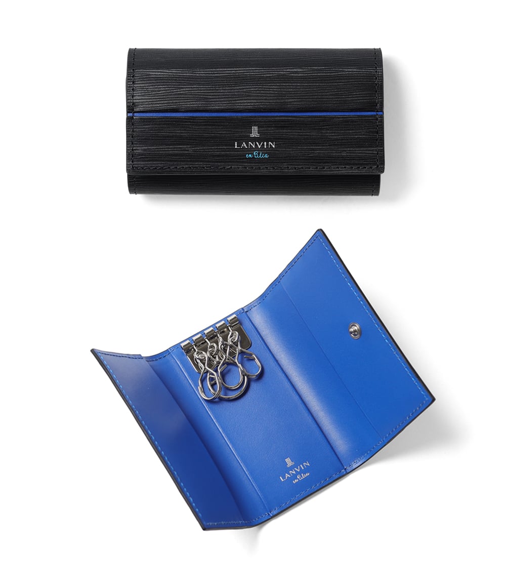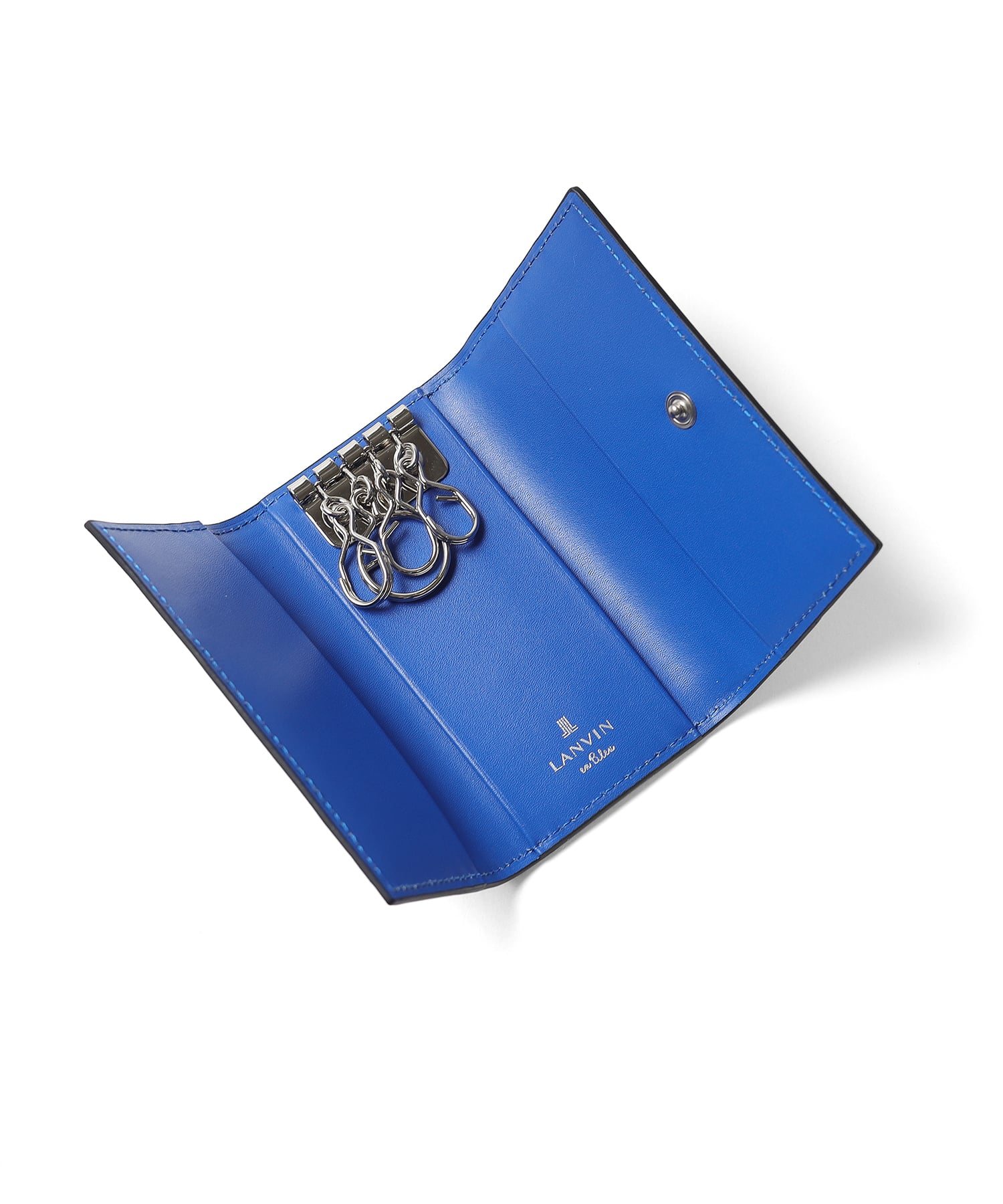 ポイントのラインカラーと見る角度によって模様が浮かび上がる深みあるデザインに仕上げたランバンオンブルーのキーケースです。内装はラインカラーに合わせたバイカラー仕様になっております。