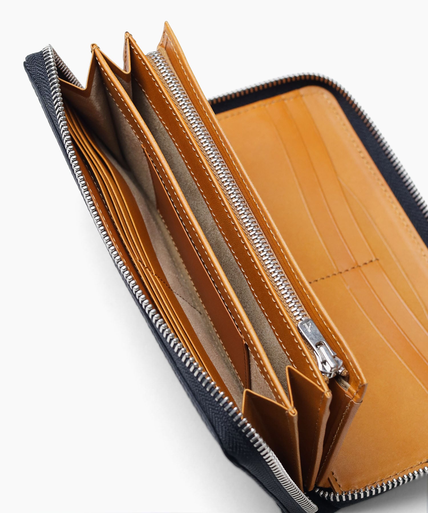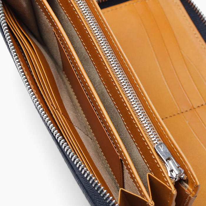 フランスデュプイ社製カーフレザーを使用したラウンドファスナー仕様の長財布。最高級のカーフ専門タンナーで鞣された素材は、独特の味わいとタッチ感が魅力です。