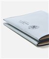表面は、ホワイトワックスにより白くスムースな状態になっています。ワックスを吹き付けただけの状態なのでとてもデリケートにできており、少し爪を立てただけでワックスがとれ、傷のように見えてしまいます。深くひっかけばひっかくほど、ワックスを貫通し革本体が削れてしまう場合もあり、磨き続けても傷っぽく残ってしまいます。さらに水に大変弱く、すぐに拭き取っても水ぶくれのようになってしまうほどかなりデリケートにできています。