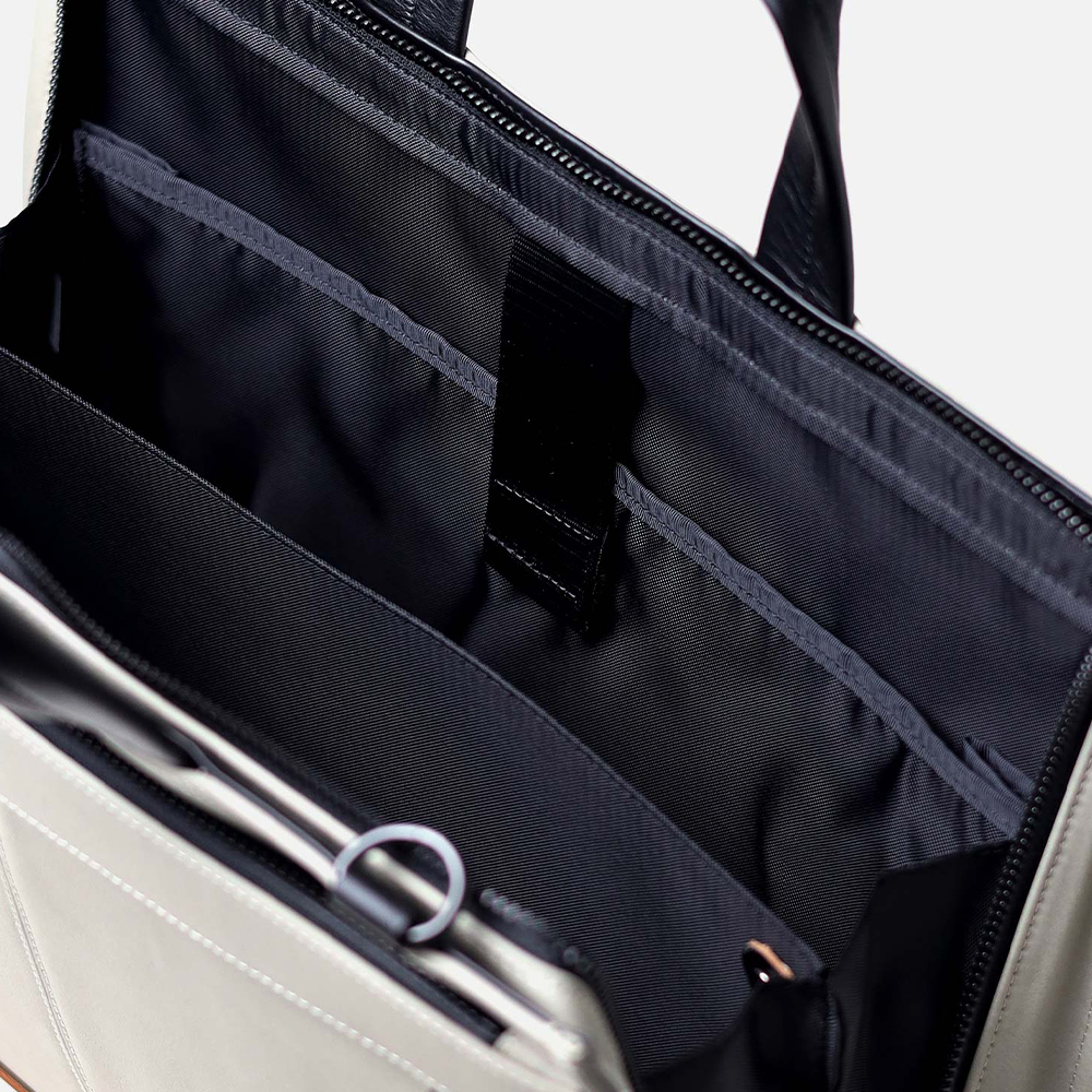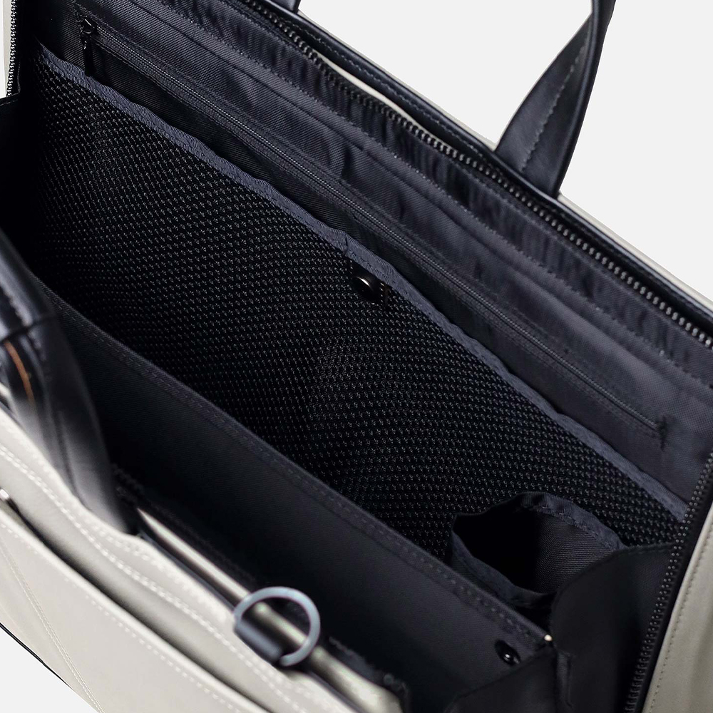 B4対応となっており、内装のクッションポケットには13インチPC収納も可能です。また、ペットボトルホルダーや多数のポケット、取り外し可能な仕切り等、収納機能が充実しております。