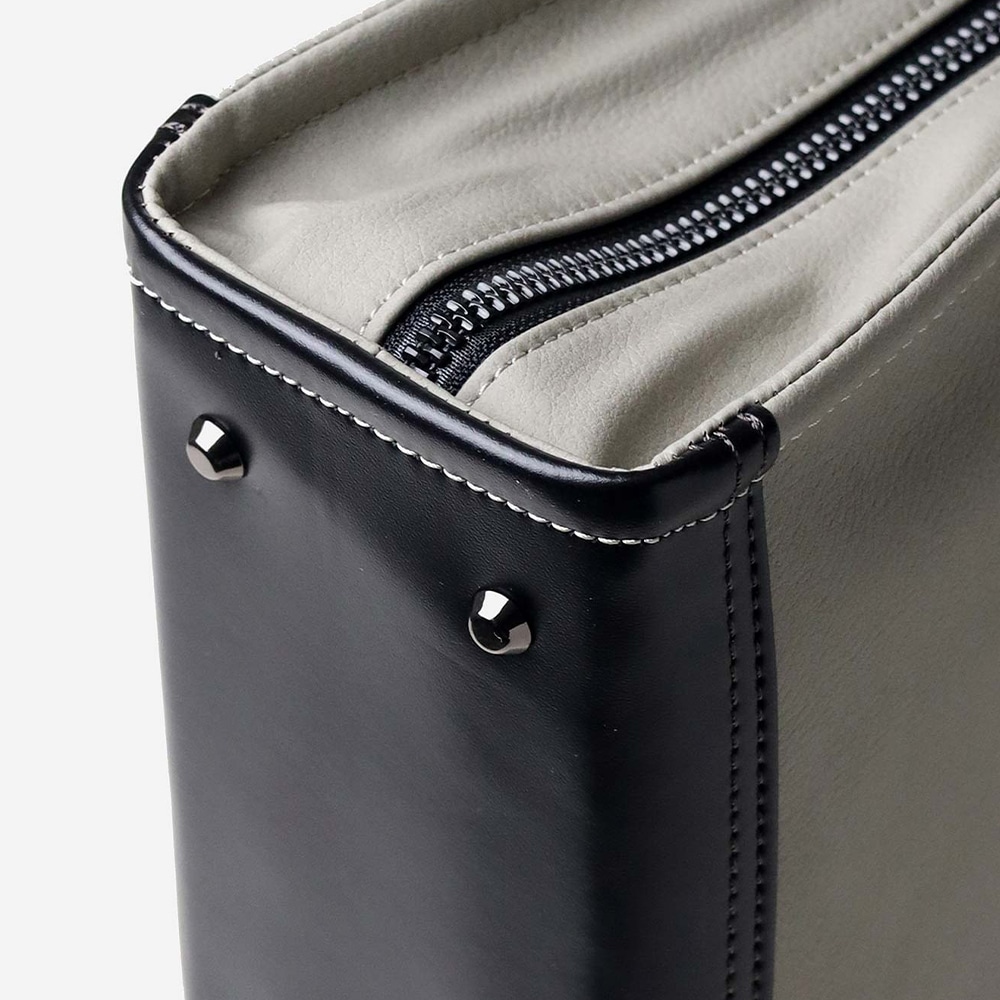 ナチュラルな革の切り目がアクセントの、高スペック合成皮革を用いたタケオキクチの軽量B4ビジネスバッグ。ソフトな風合いながらもしっかりと自立し、内装にも機能性を充実させました。ショルダーベルト付属で肩掛けも可能な2WAY仕様になっております。