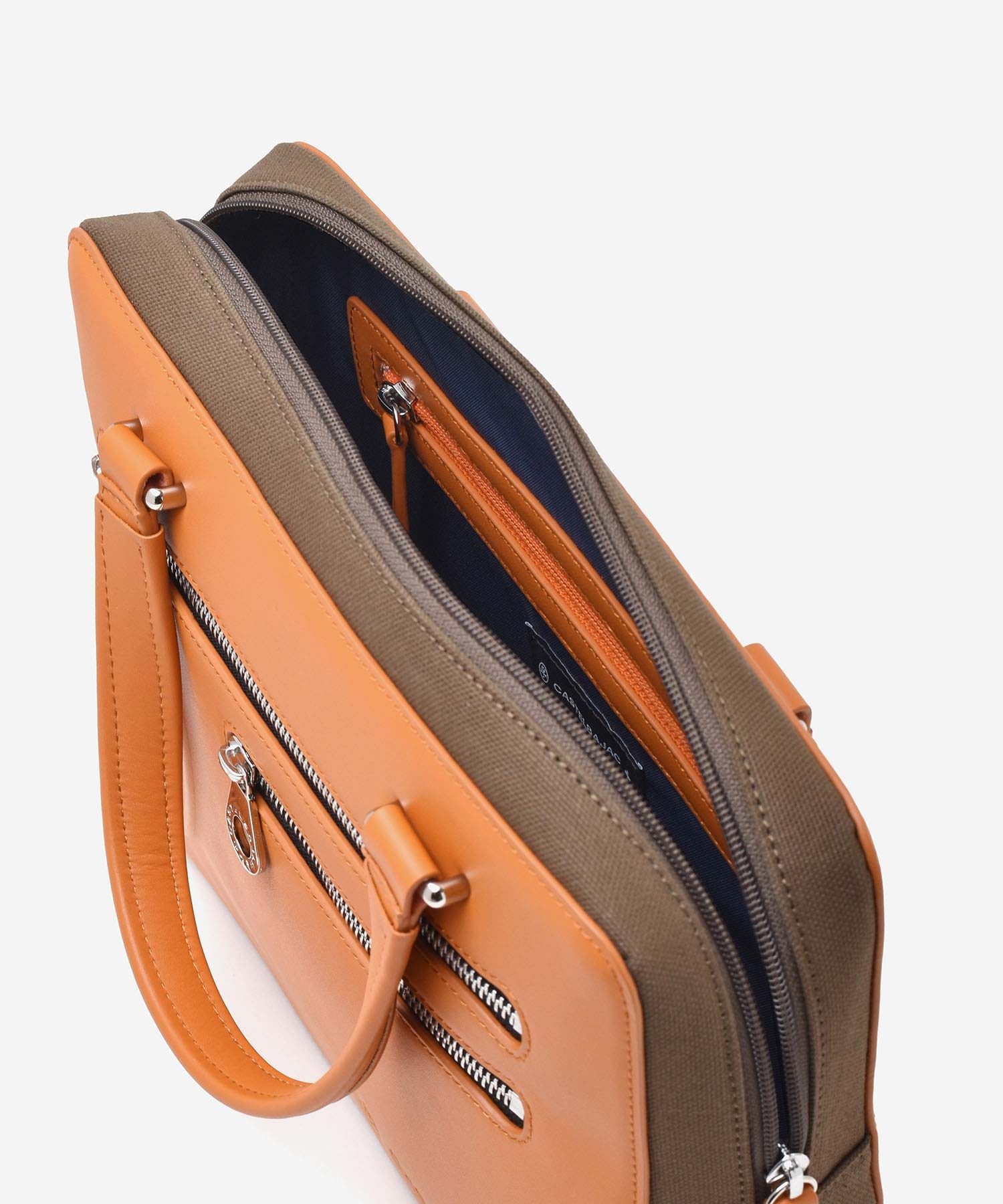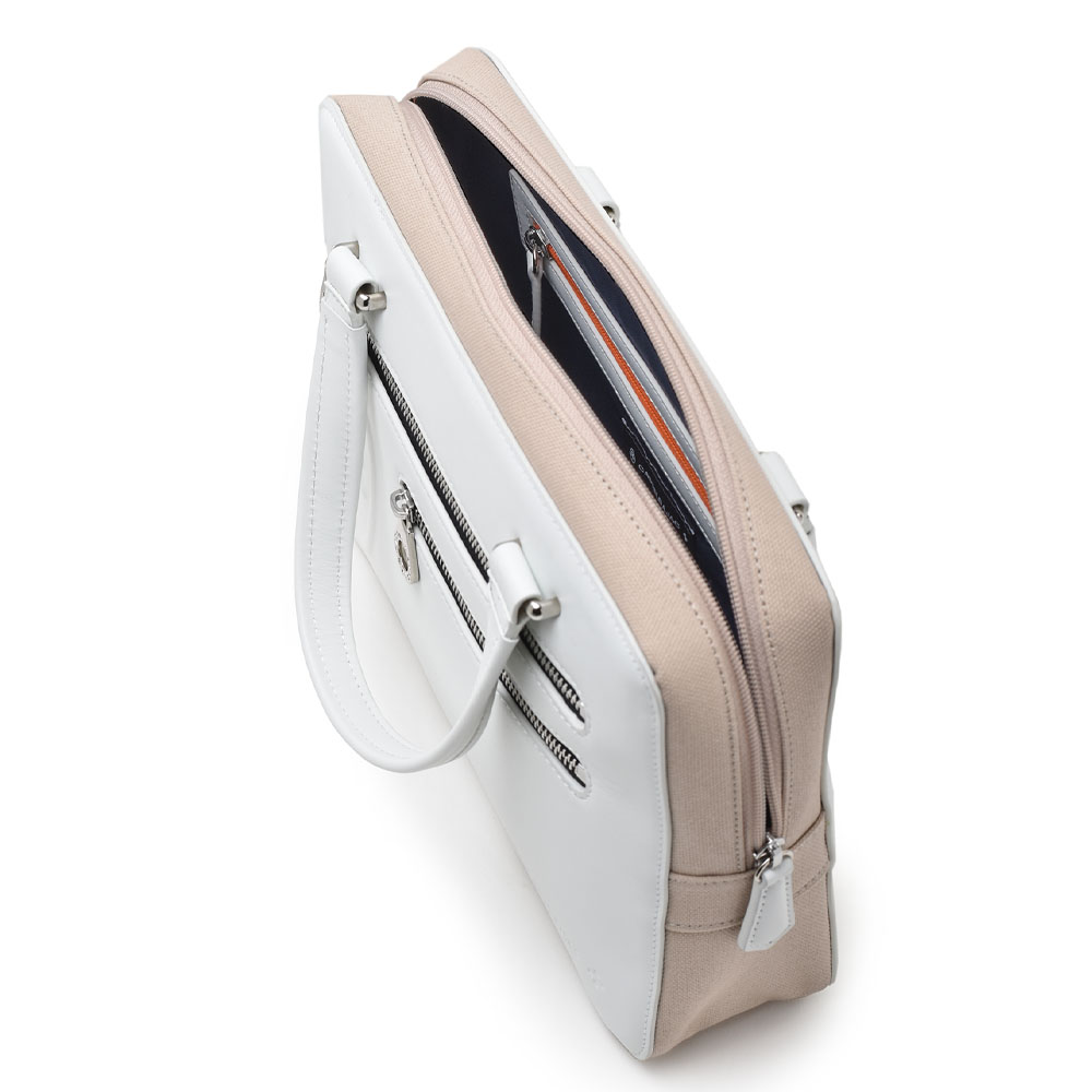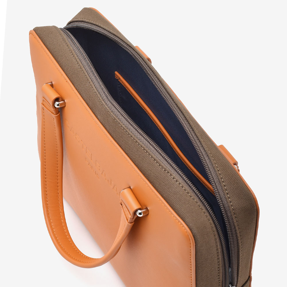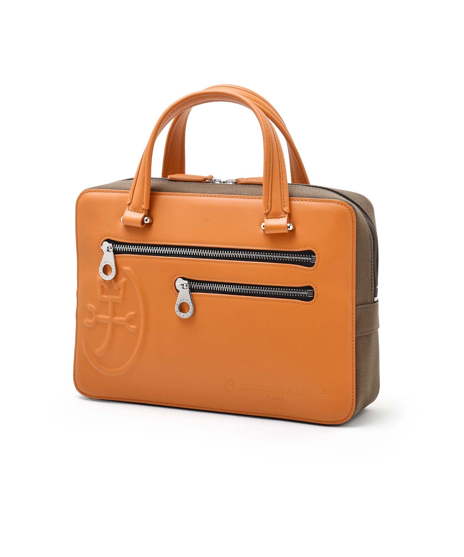 丸みを帯びた柔らかいフォルムが落ち着きのある表情を演出するCASTELBAJACのブリーフケース。本体素材には牛革と帆布を使用しており、牛革の上品さと帆布の丈夫さのコラボレーションによる風合いをお楽しみください。