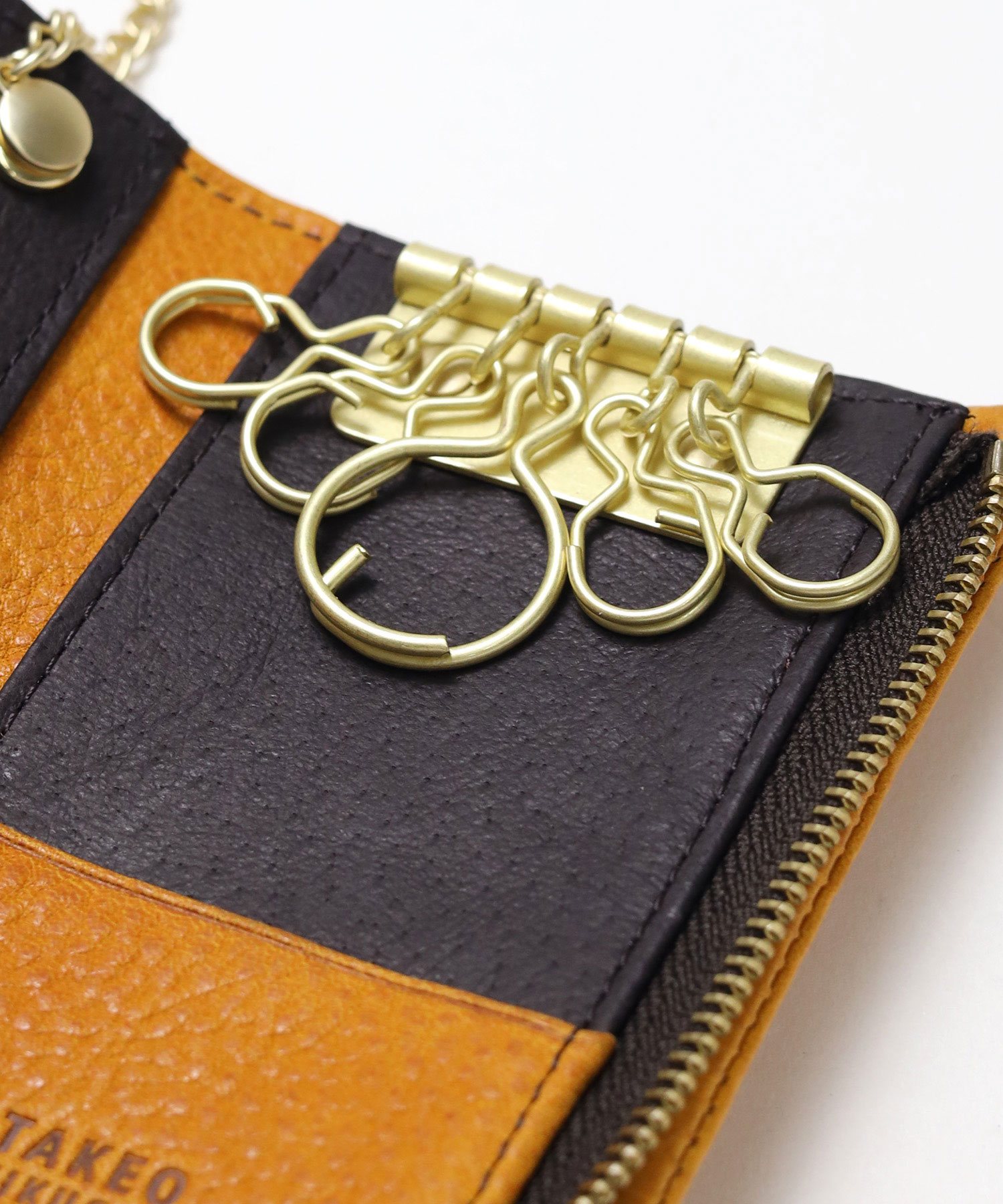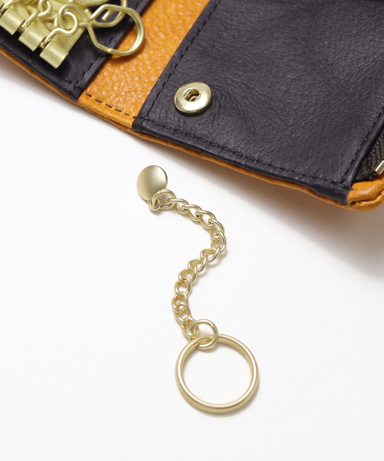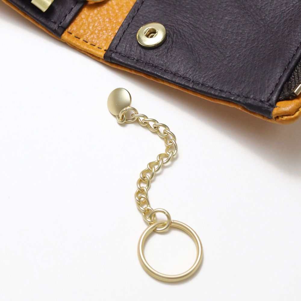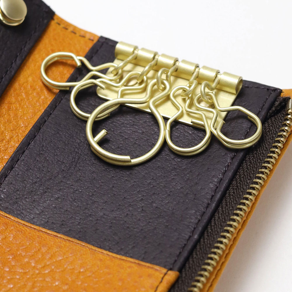 内装にはキーリングが5つ、スマートキーが収納可能なポケット、キーチェーン、カードポケットが2つあります。キーチェーンはホックになっているので簡単に取り外しが可能です。