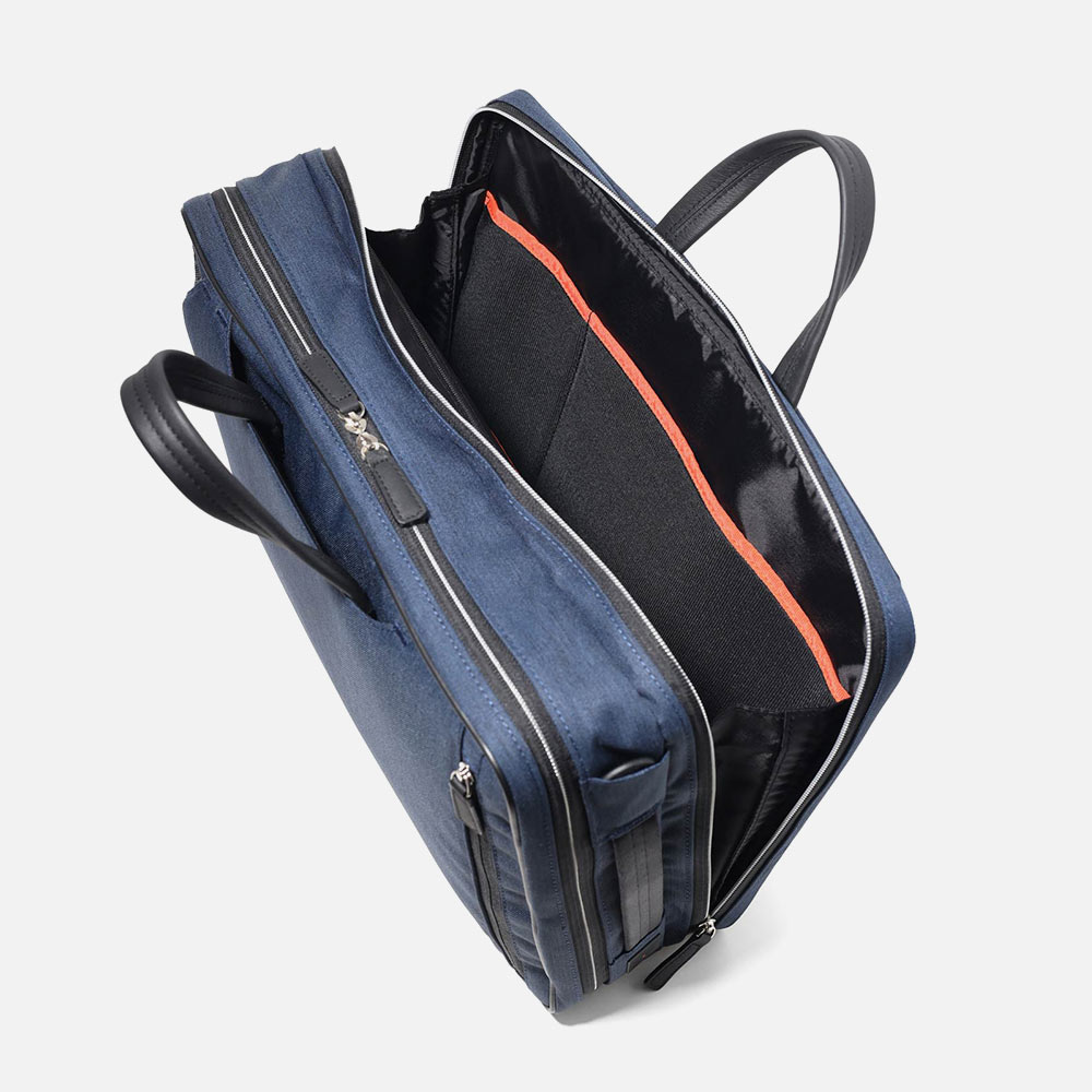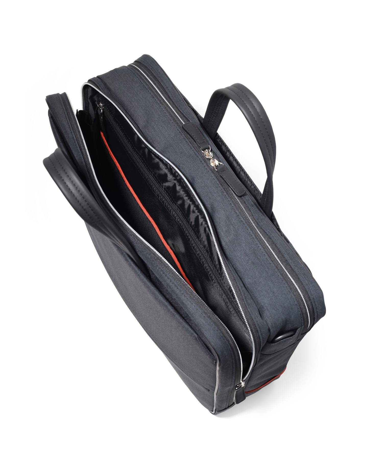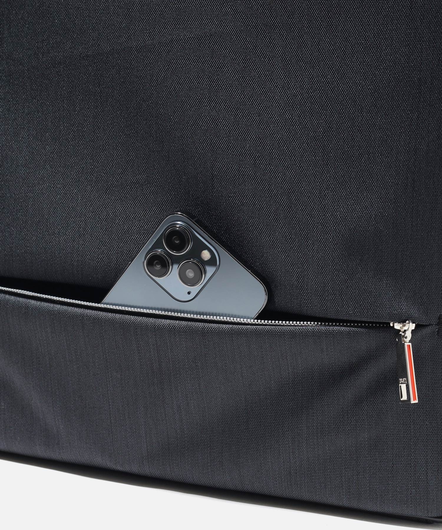 豊富な収納ポケットで、ビジネスに必要なあらゆる荷物の持ち運びが可能です。B4ファイルがすっぽり収まるメインコンパートメントは前室と後室に分かれた2層タイプ。1泊2日の出張にも対応した大容量なビジネスバッグです。前室にはファスナーポケットが1つ、大中小のポケットが1つずつ装備されています。ガジェット類など細かな荷物を整理して収納が可能です。後室には15.6インチPC収納ポケットがあり、出張先にもPCを持ち運ぶことができます。また、ビジネスバッグの前面にはアオリポケットがあり、新聞やサッと取り出したい小物の収納に便利です。フロントのファスナーポケットは浅型に設計しており、さらに内側はパイル生地を使用することで、スマートフォン等を入れても画面を傷つける心配がありません。