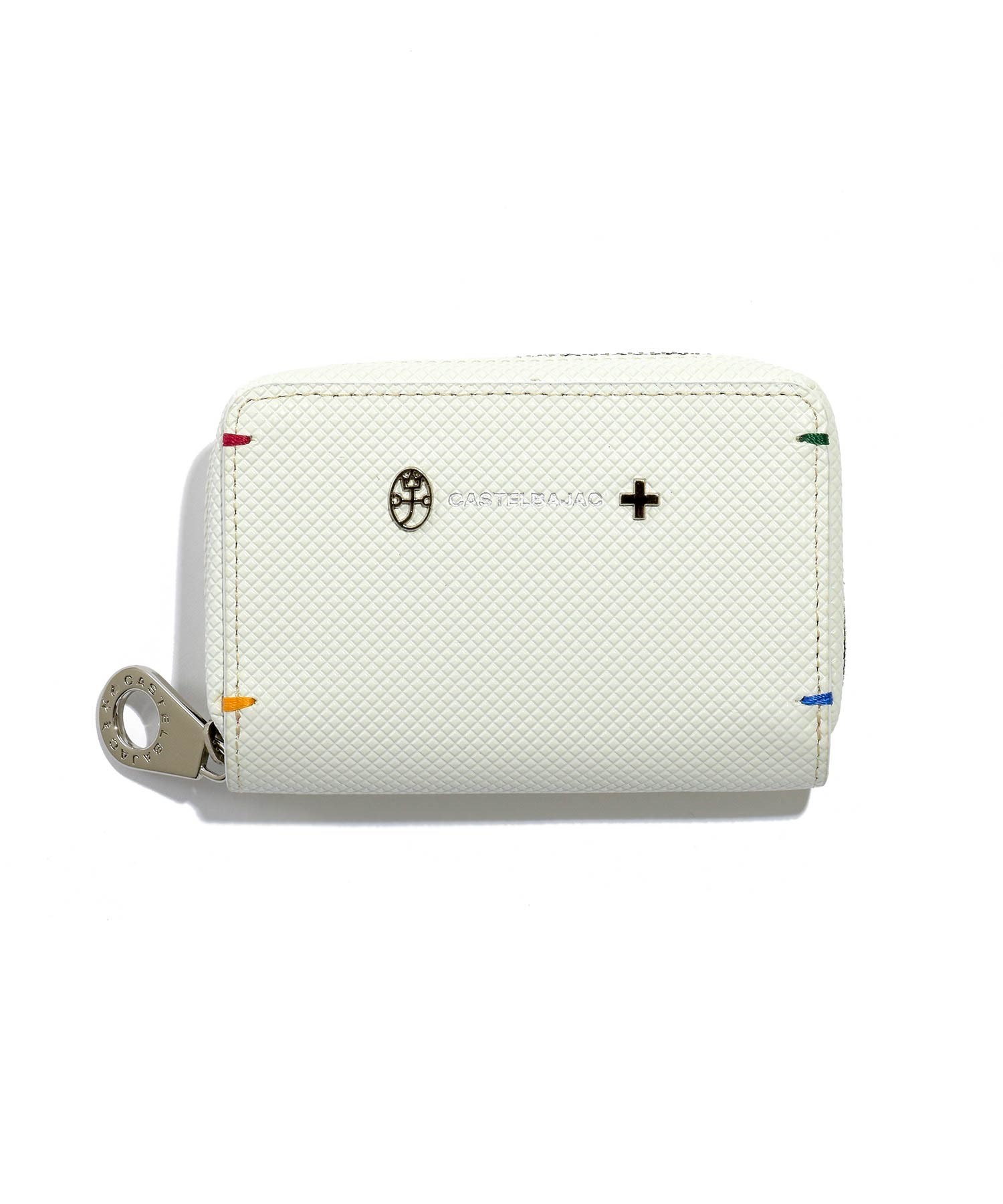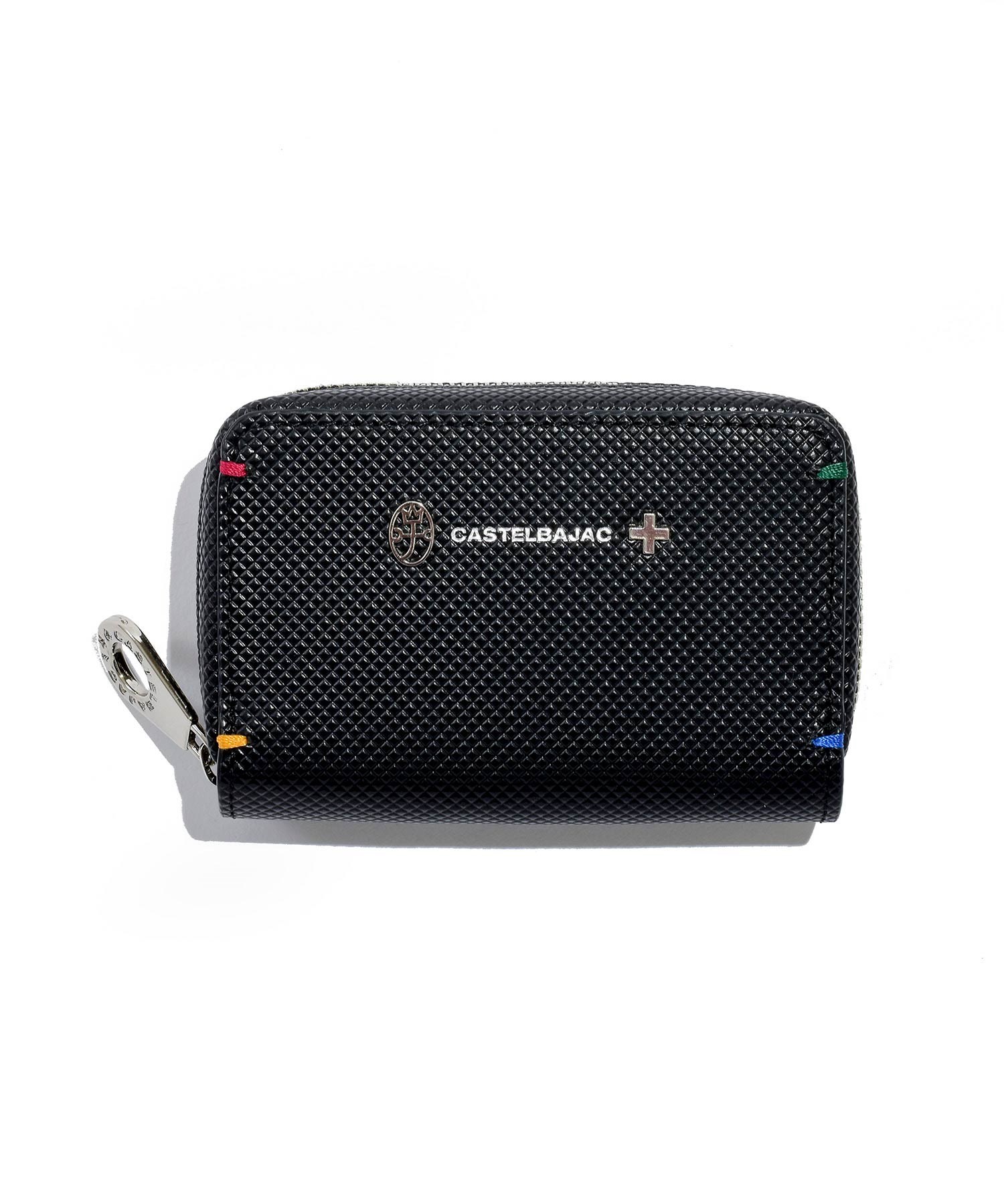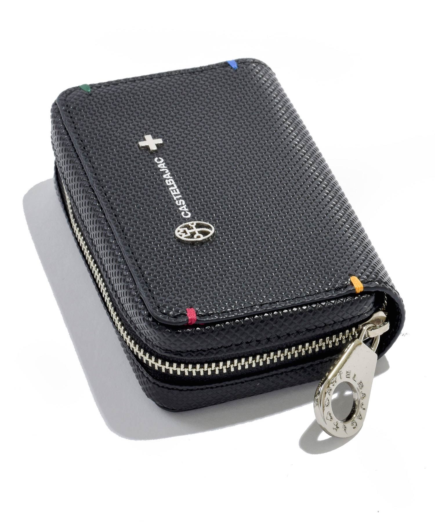 格子柄のエンボス加工を施した牛革を斜めに使用することでダイヤ柄を表現したカステルバジャックらしいPOPな雰囲気のスマートッキー対応のキーケース。ツヤ感とダイヤ柄による濃淡で独特の奥行き感と立体感をだしています。四角に施されたカステルバジャックカラーのステッチもデザインポイントです。