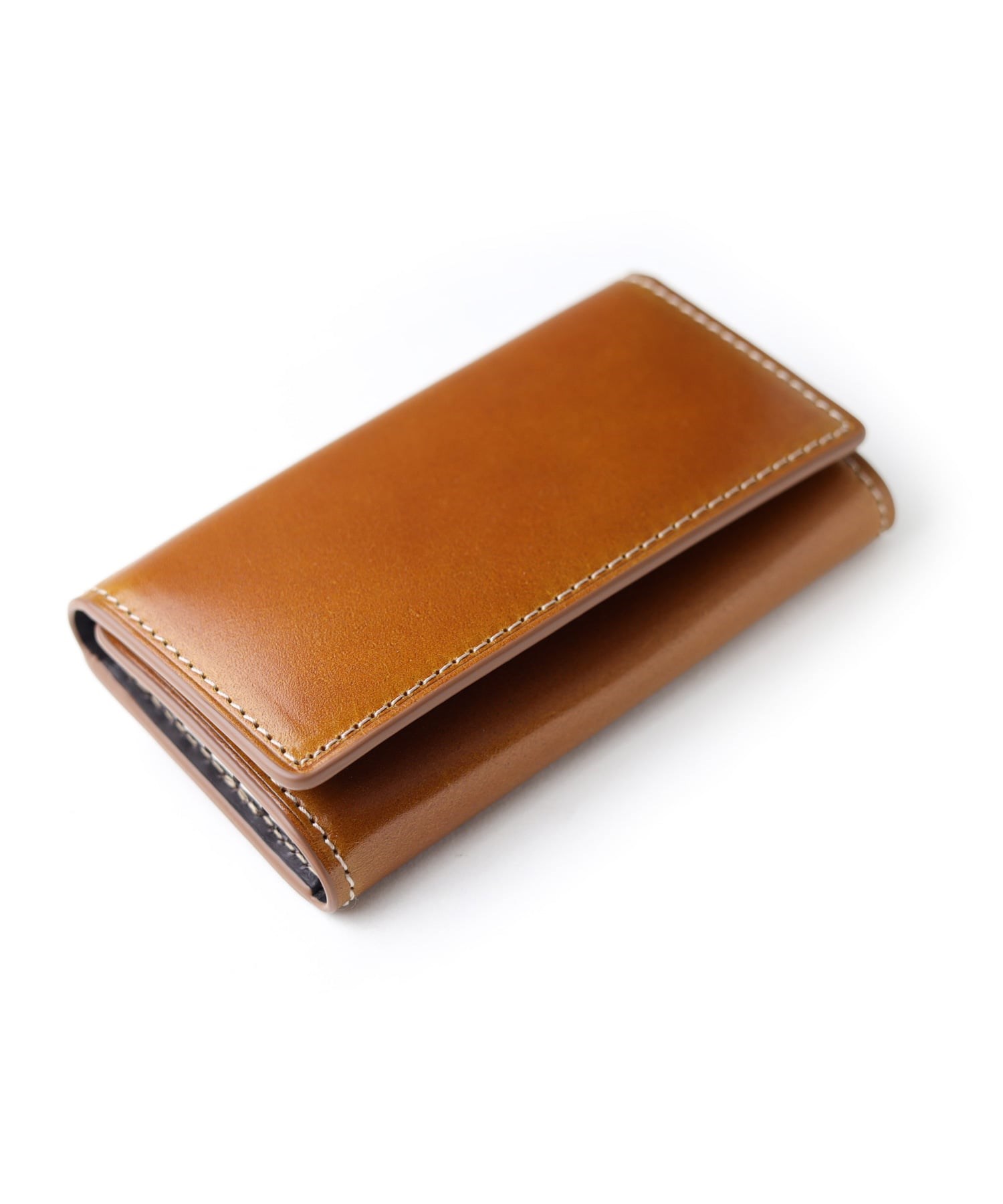 透明感のあるツヤ感が魅力の国産水染めコードバンを使用したキーケース。「革のダイヤモンド」とも称されるコードバンは、農耕馬の臀部にあるコードバン層からしか採れない、非常に希少性の高い高級皮革です。硬質な素材感や経年変化によって、輝きが増し艶感をお楽しみいただけます。