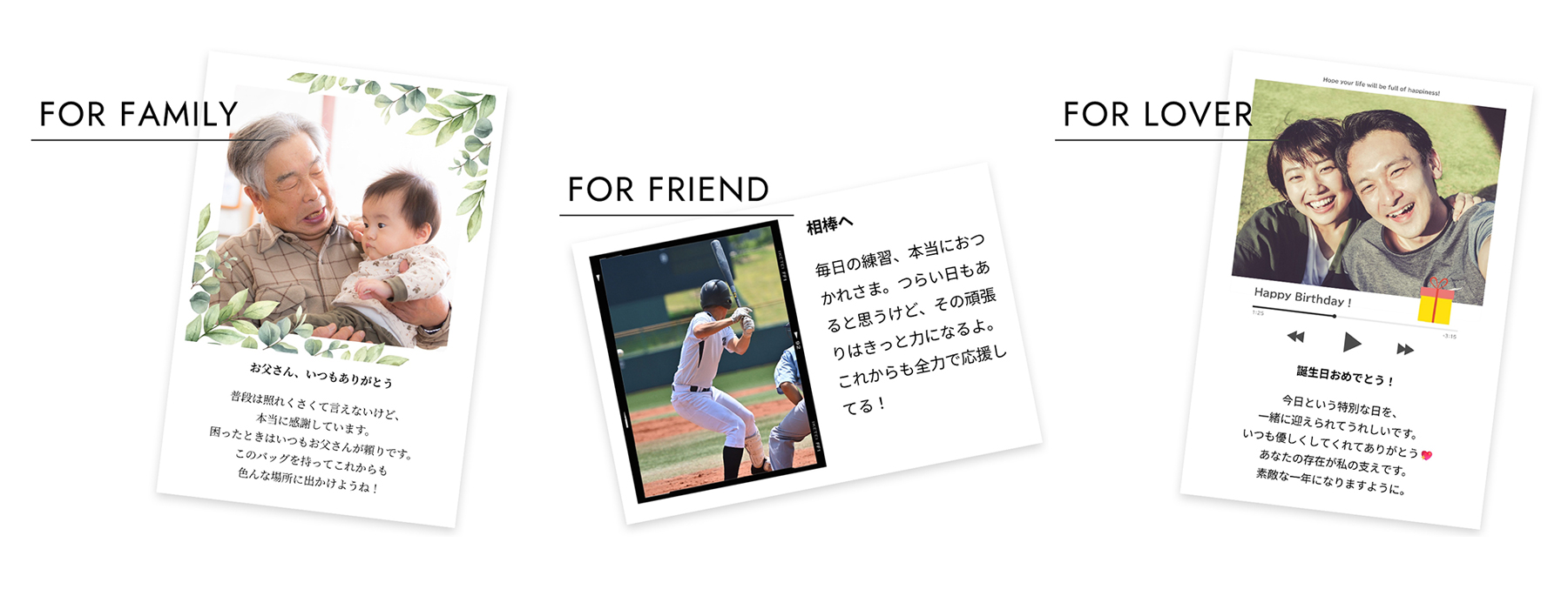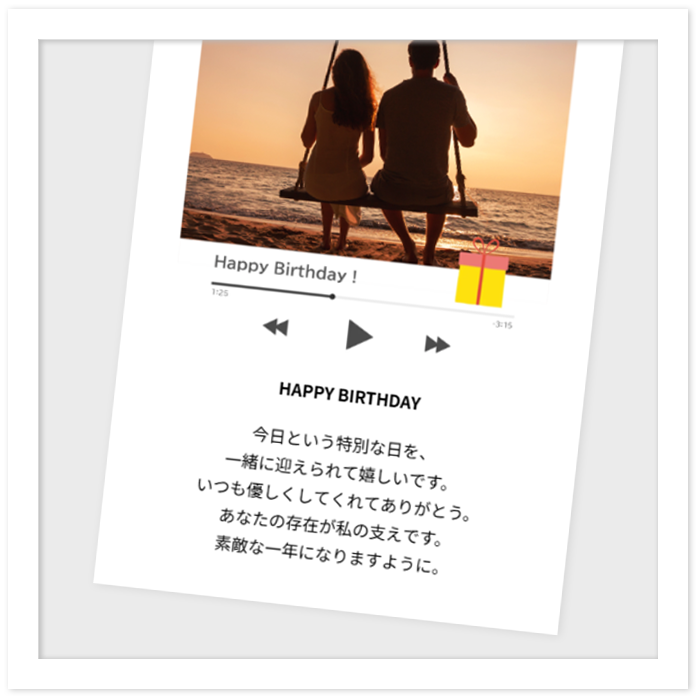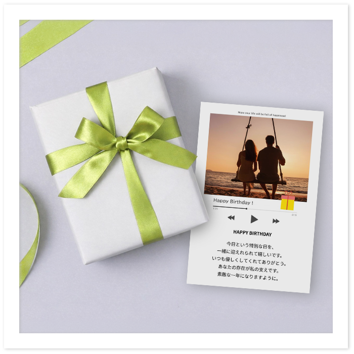 写真とメッセージを入れたオリジナルフォトカードを作成し、ご注文の商品と一緒にお届けします。