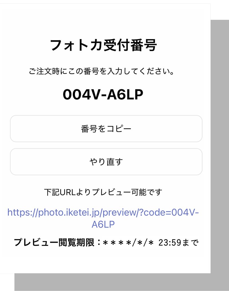 商品購入時に受付番号のコードを入力する。